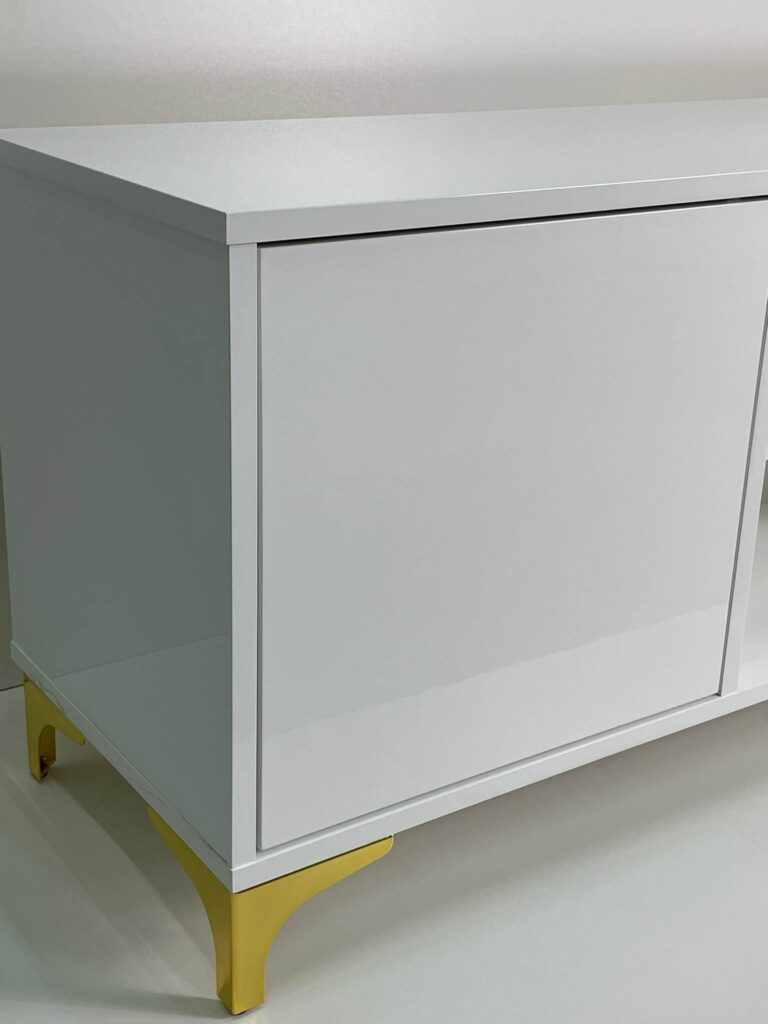 Zwróć uwagę na nóżki, na których stoi komoda Bianco. Mają nowoczesny kształt, przypominający literę L i są w kolorze złotym. Chcesz mieć inne dodatki? Nie ma problemu. Możesz je wybrać z naszej oferty.
