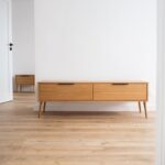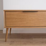 Szafka ma podłużny kształt, dzięki czemu łatwo jest umieścić ją pod zawieszonym na ścianie telewizorem lub postawić sprzęt bezpośrednio na stoliku. Ekran będzie znajdował się na wygodnej do oglądania wysokości. Pamiętaj, że długość komody RTV też jest do wyboru.