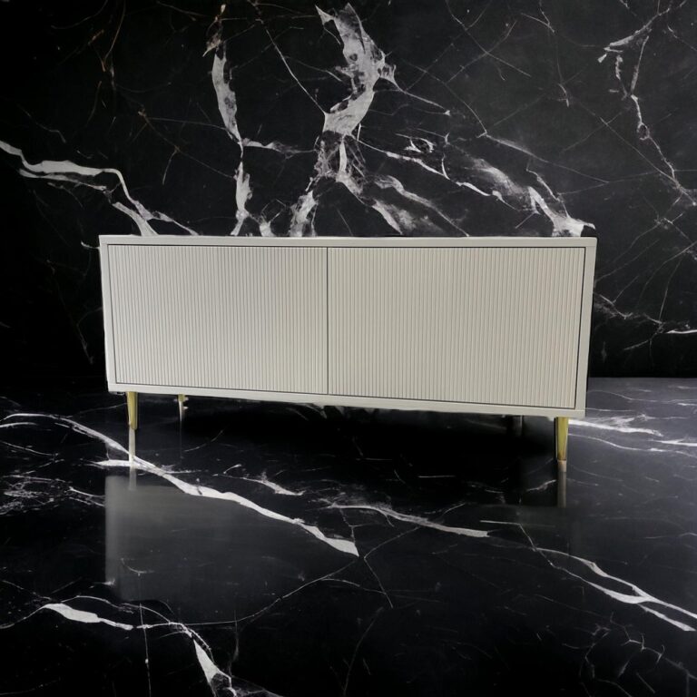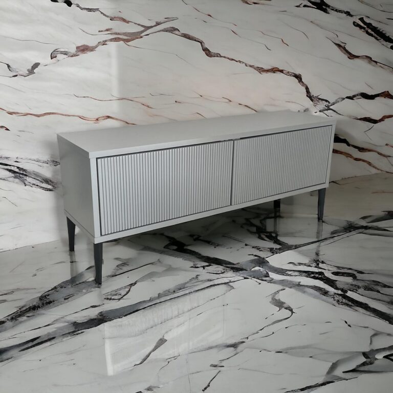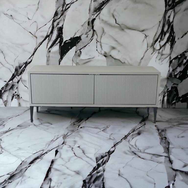 Na zdjęciach prezentujemy komodę RTV białą i szarą, ale model Skagen możemy wykonać w wielu innych barwach. Do wyboru są m.in. modne kolory z palety RAL. Idealnie komponują się z ryflowanymi frontami.