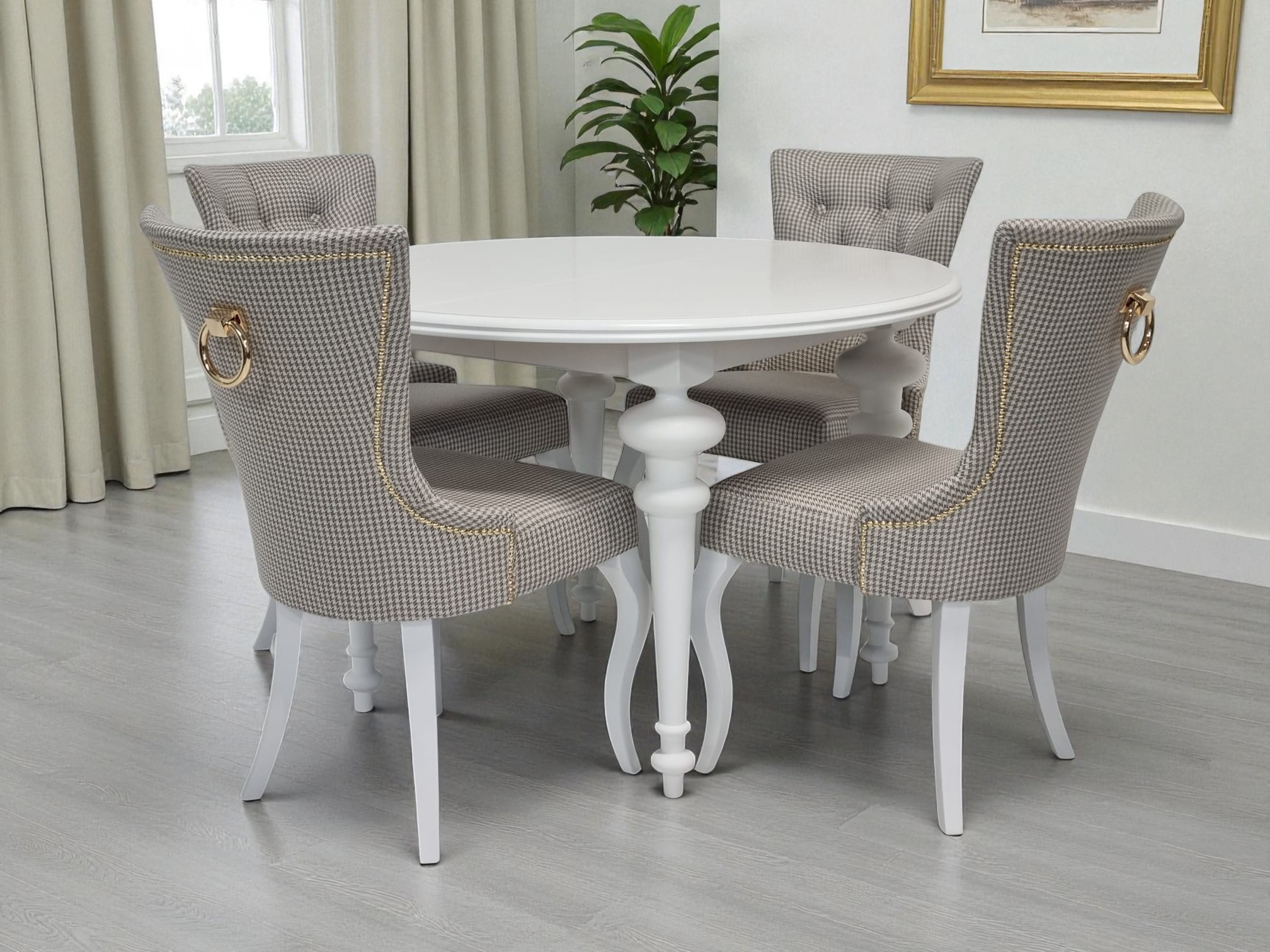 W tej ofercie krzesło zostało obite wyjątkowym wzorem w pepitkę, to wyraz pełnej klasy elegancji w każdym wnętrzu. Pepitka, będąca ikoną zarówno w modzie, jak i w aranżacji wnętrz, nadaje temu modelowi niepowtarzalny charakter, łącząc ponadczasowy wzór z nowoczesnym designem.