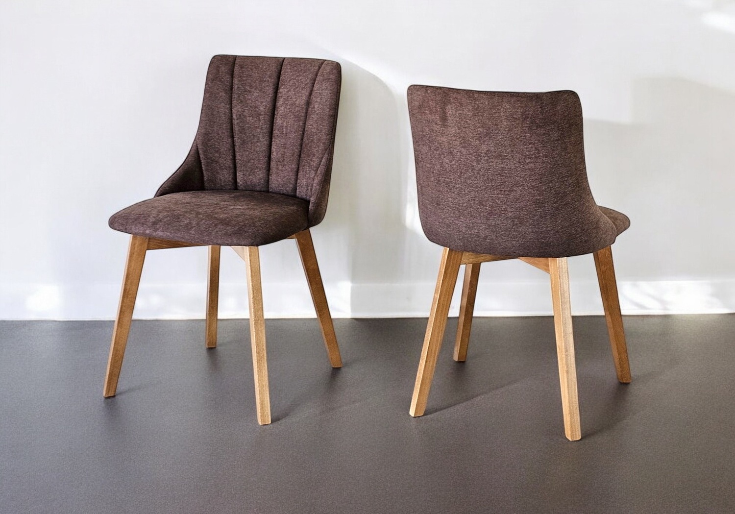 Krzesła Loft Bjorn 3 wykonane są na drewnianym stelażu. Posiadają patykowate nogi w kolorze Dąb Naturalny. Mebel obity jest wysokiej jakości tkaniną Aston 5, która jest elegancka i łatwa do utrzymania w czystości. Wystarczy przetrzeć mebel wilgotną szmatką.