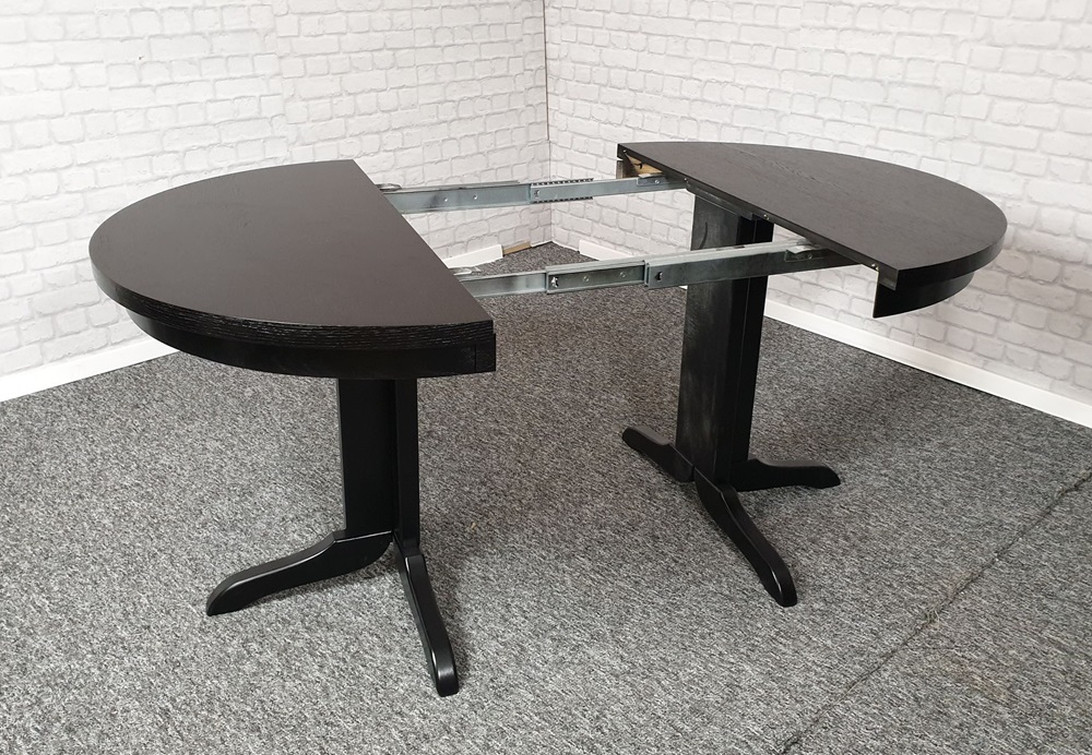 • stoły z okrągłym blatem po rozłożeniu nie posiadają maskownicy