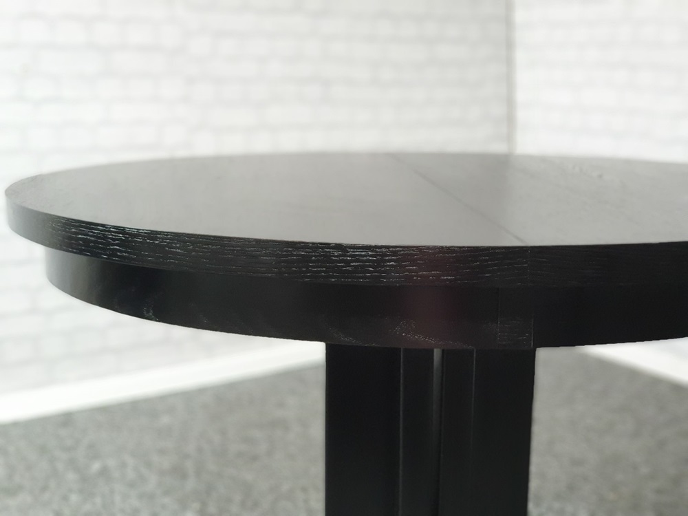 Stół okrągły Majorka ma oryginalny i praktyczny kształt. Dostępny jest w wersji nierozkładanej i rozkładanej. Blat wykonany został z płyty MDF, pokrytej naturalną okleiną z drewna dębowego. Może mieć średnicę: 90, 100 lub 110 cm.