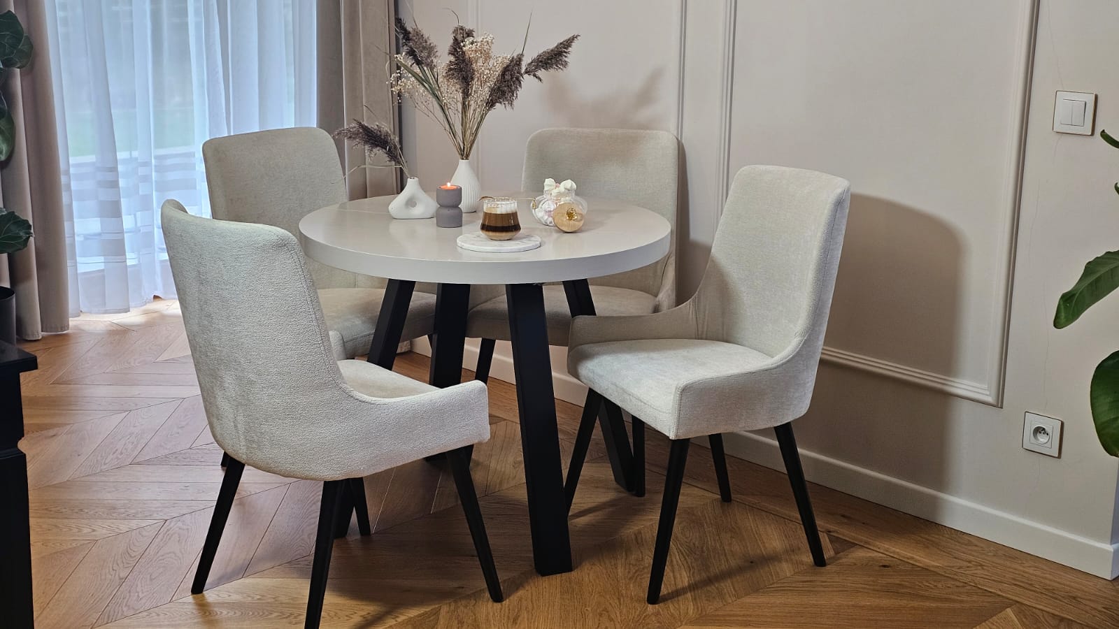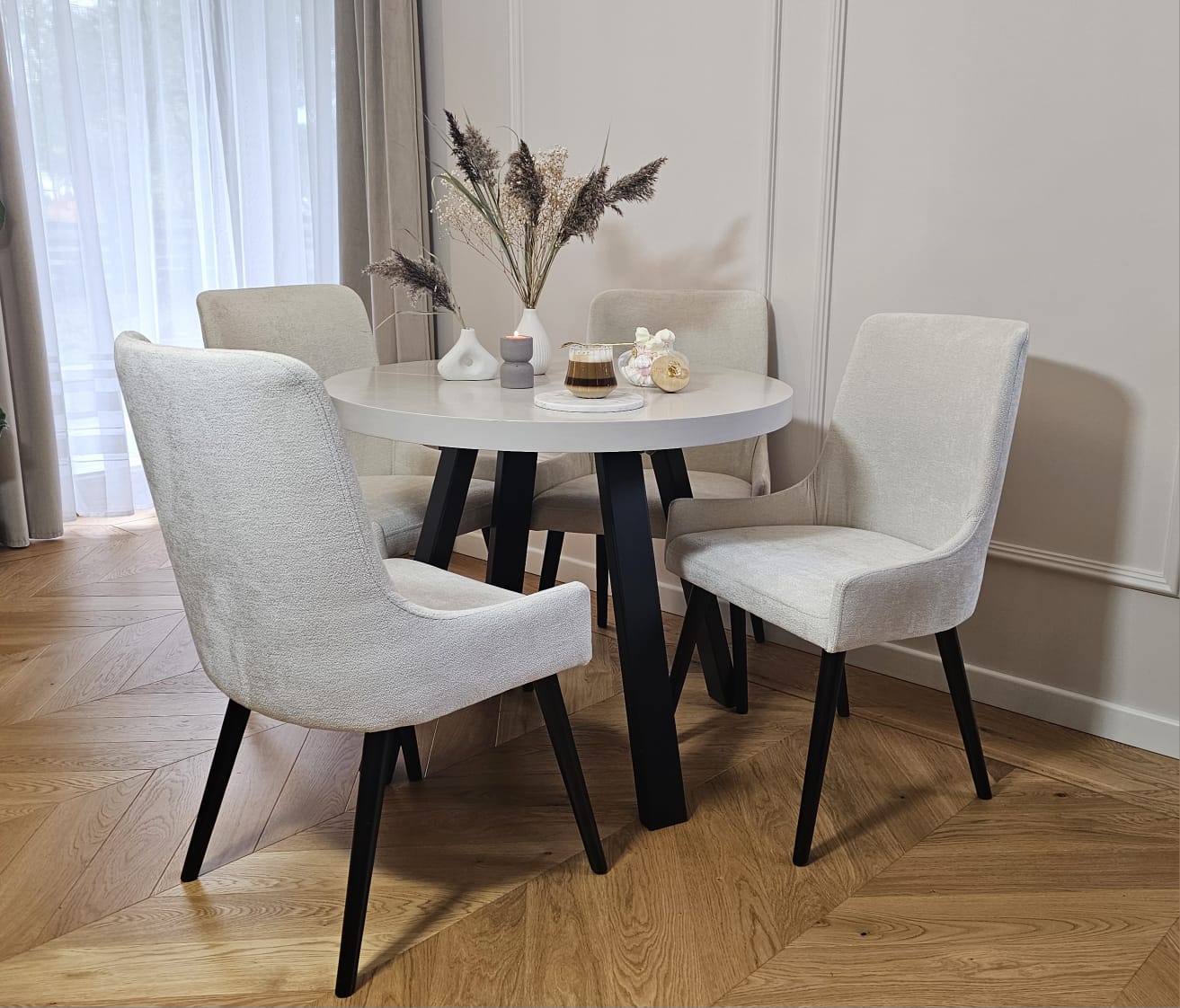 Stół okrągły Oslo II z krzesłami tapicerowanymi Rosa